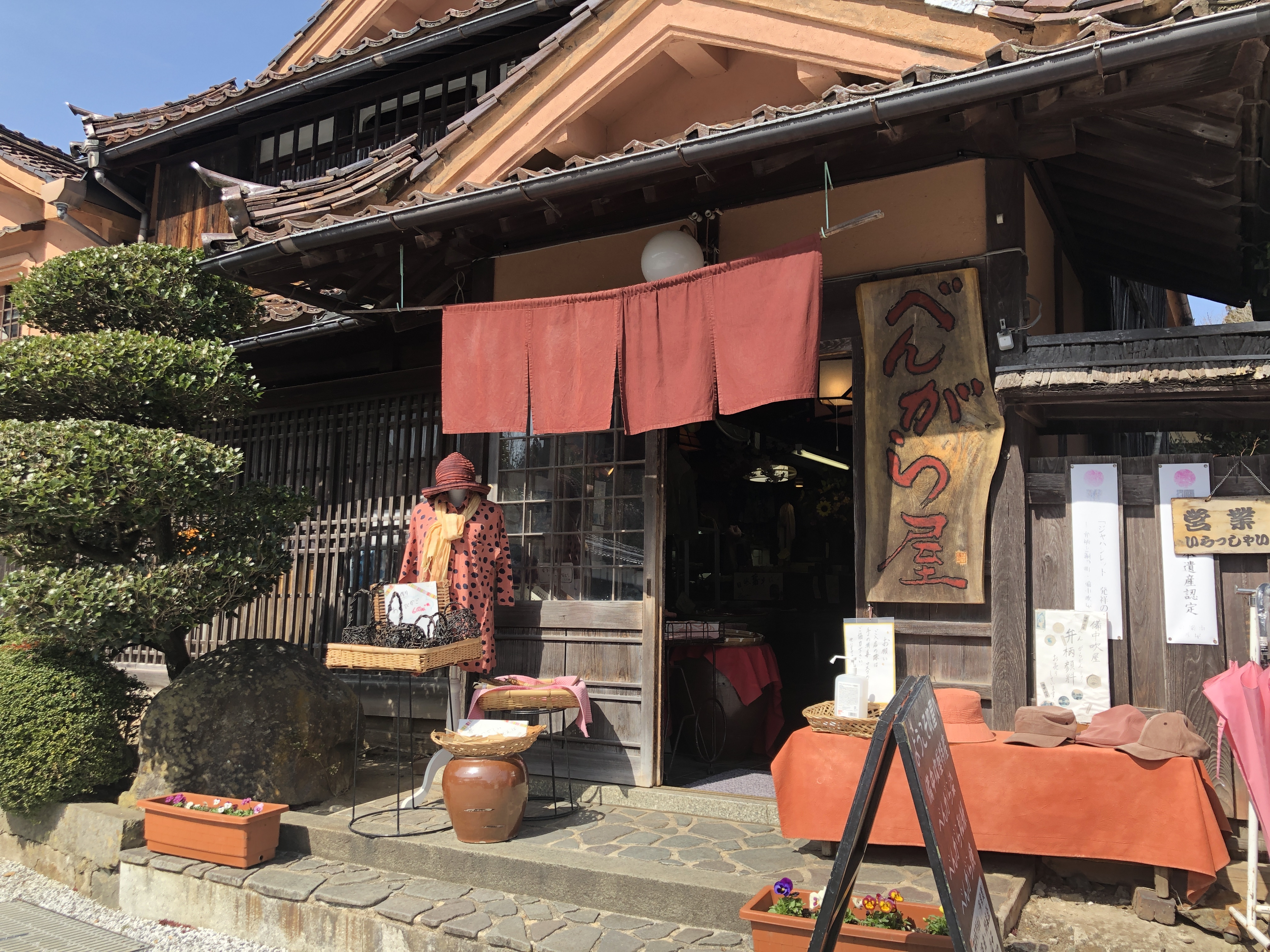 ベンガラを染めてる工房を見つけたので、入ってみます。